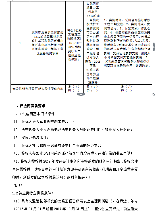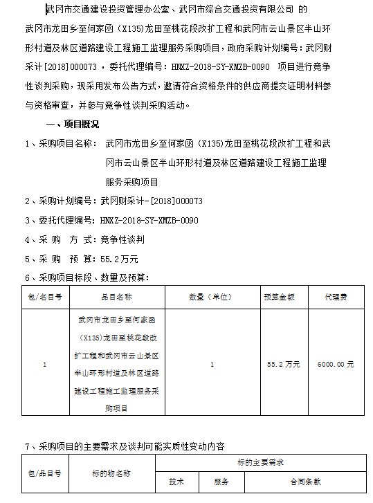 武冈市龙田乡至何家函(X135)龙田至桃花段改扩工程和武冈市云山景区半山环形村道及林区道路建设工程施工监理服务采购项目竞争性谈判邀请公告