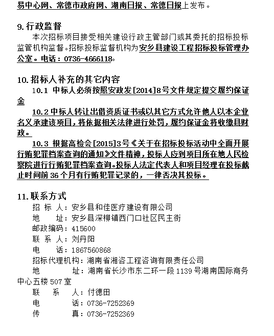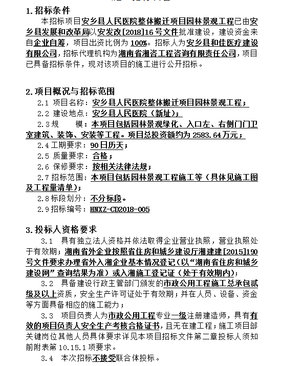 安乡县人民医院整体搬迁项目园林景观工程 施工招标公告