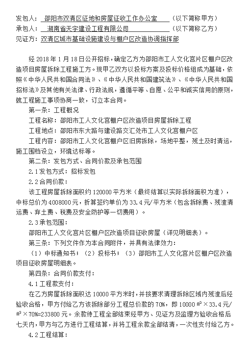 邵阳市工人文化宫片区棚户区改造项目房屋拆除工程合同书