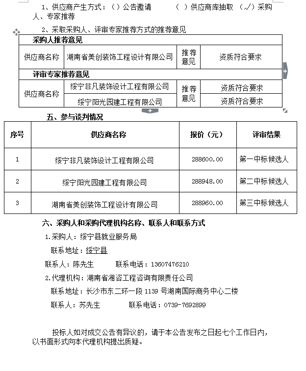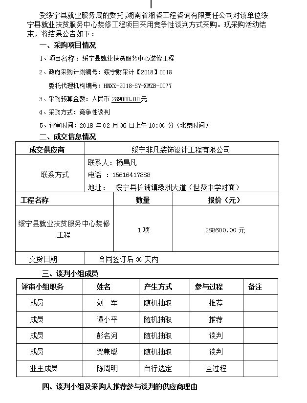绥宁县就业扶贫服务中心装修工程谈判成交公告