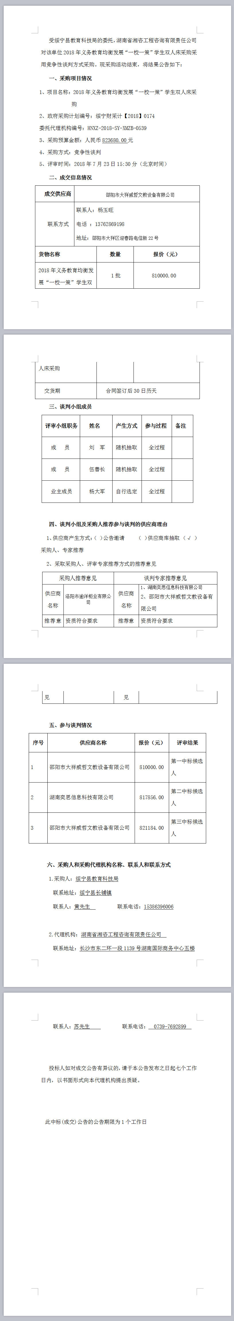 2018年义务教育均衡发展“一校一策”学生双人床采购谈判成交公告