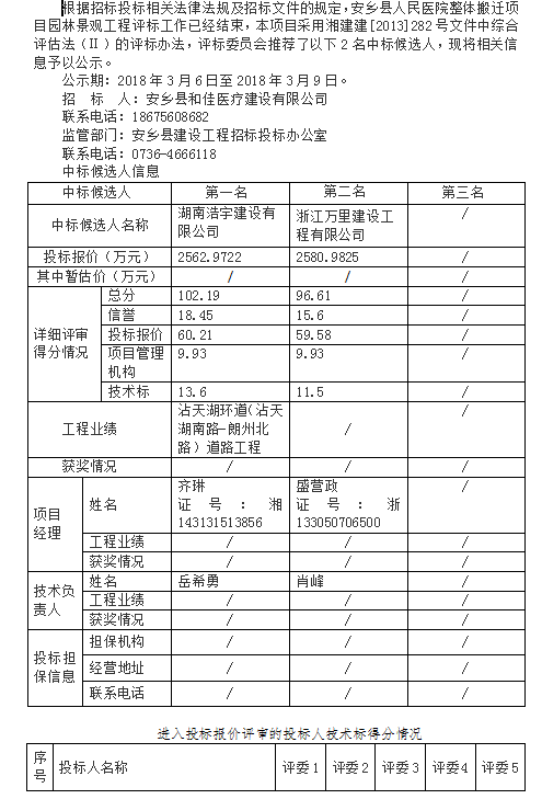 安乡县人民医院整体搬迁项目园林景观工程 中标候选人公示