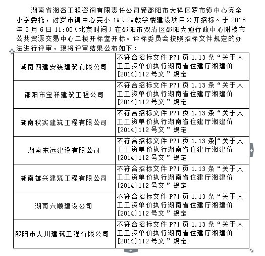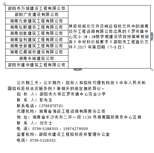 罗市镇中心完小1#、2#教学楼建设项目 评审结论公示