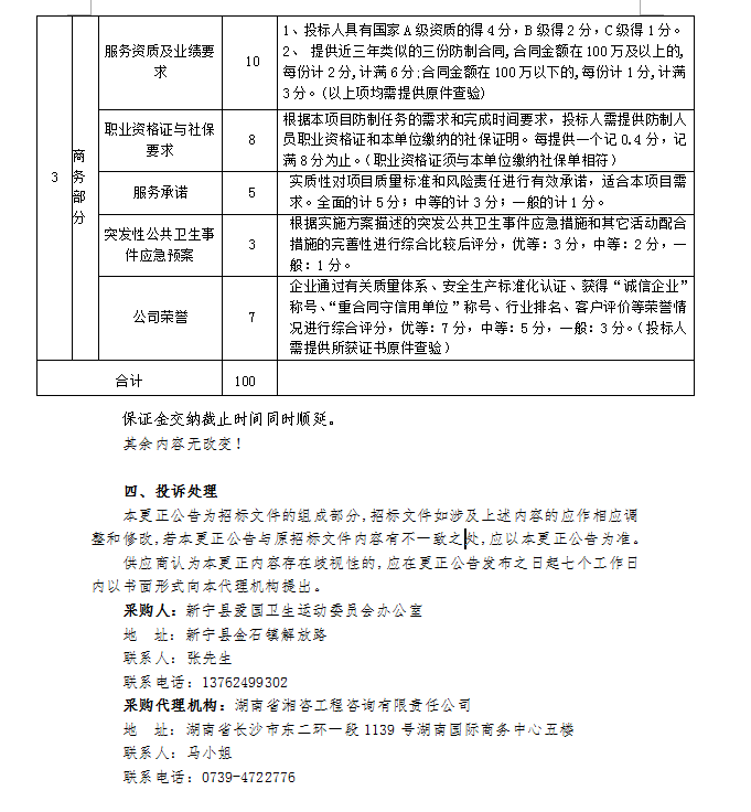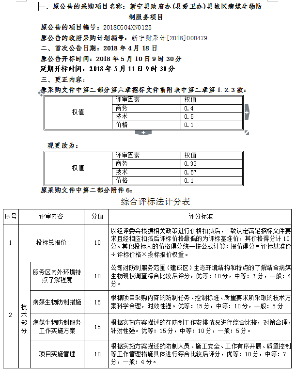 新宁县政府办(县爱卫办)县城区病媒生物防制服务项目 公开招标更正公告(二)