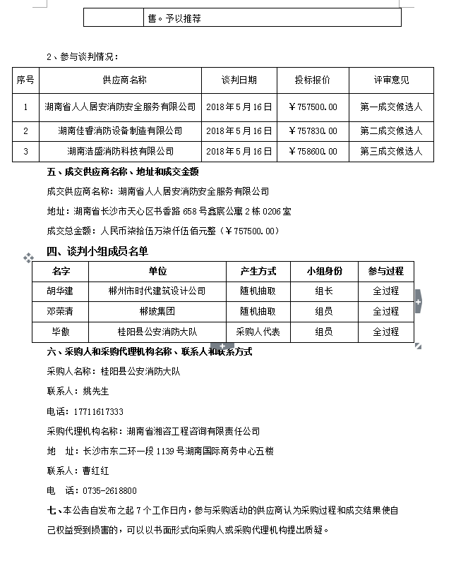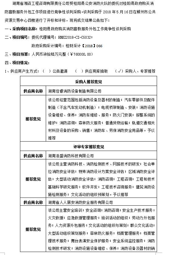 桂阳县政府购买消防宣教服务外包工作竞争性谈判采购成交公告